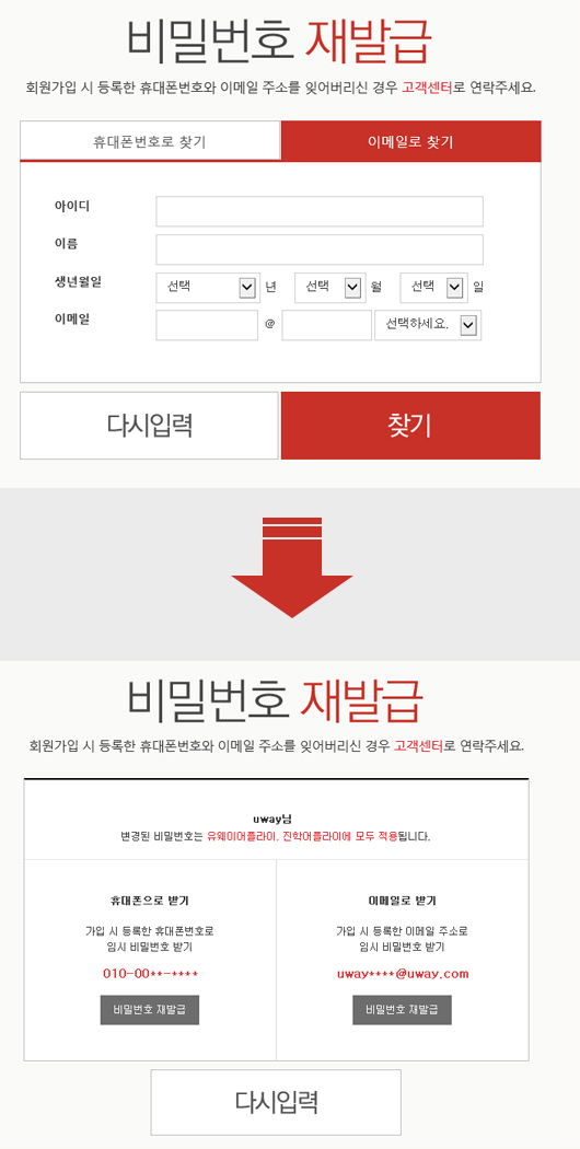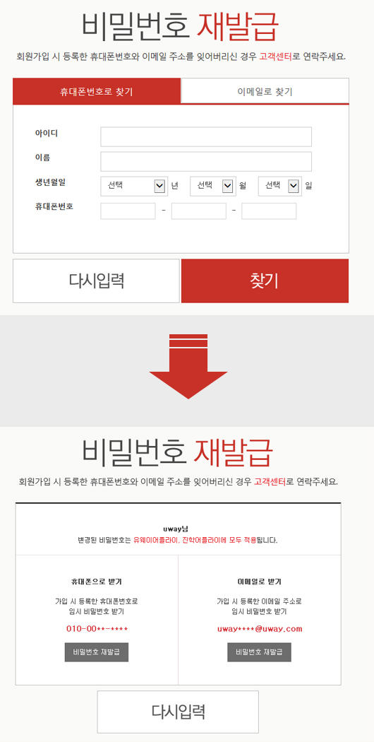 - ȸ¿ø°¡ÀÔ ½Ã ÈÞ´ëÆù¹øÈ£°¡ ¾ø´Â °æ¿ì·Î °¡ÀÔÇÑ °æ¿ì ÈÞ´ëÆùÀ¸·Î ºñ¹Ð¹øÈ£ ã±â´Â ºÒ°¡´ÉÇÕ´Ï´Ù.