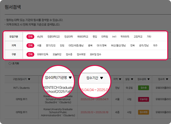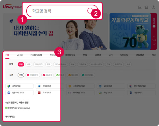 ¸ÞÀÎ ÇÏ´Ü¿¡ º¸ÀÌ´Â Á¢¼ö¸ñ·Ï¿¡¼ ¿øÇÏ´Â ´ëÇиíÀ» ã¾Æ Ŭ¸¯