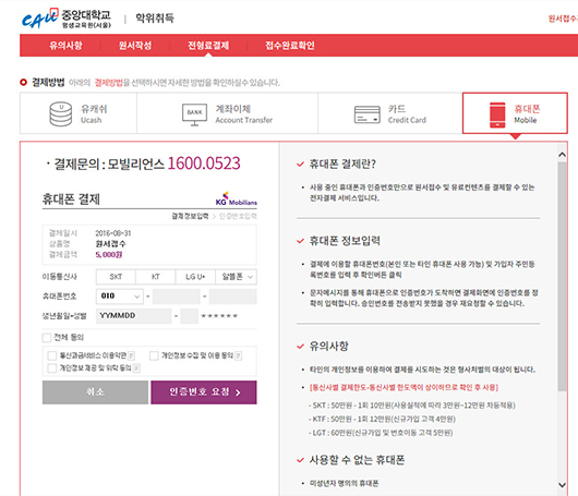 02 °áÁ¦¿¡ ÀÌ¿ëÇÒ ÈÞ´ëÆù ¹øÈ£ Á¤º¸¸¦ ÀÔ·ÂÇϰí ÀÌ¿ë¾à°ü È®ÀÎ ÈÄ, ÀÎÁõ¹øÈ£ ¿äûÀ» Ŭ¸¯ÇÕ´Ï´Ù.