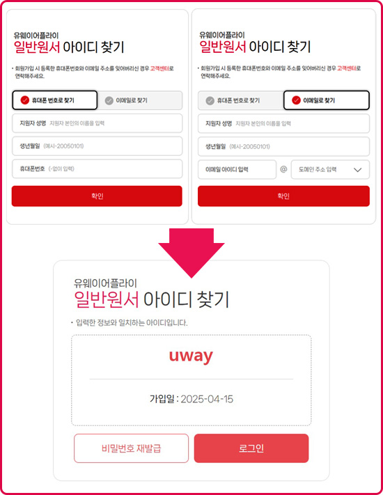- ȸ¿ø°¡ÀÔ ½Ã µî·ÏÇÑ Á¤º¸¸¦ ¸ðµÎ ÀÔ·ÂÇÑ ÈÄ, È®ÀÎ ¹öưÀ» Ŭ¸¯ÇÕ´Ï´Ù.